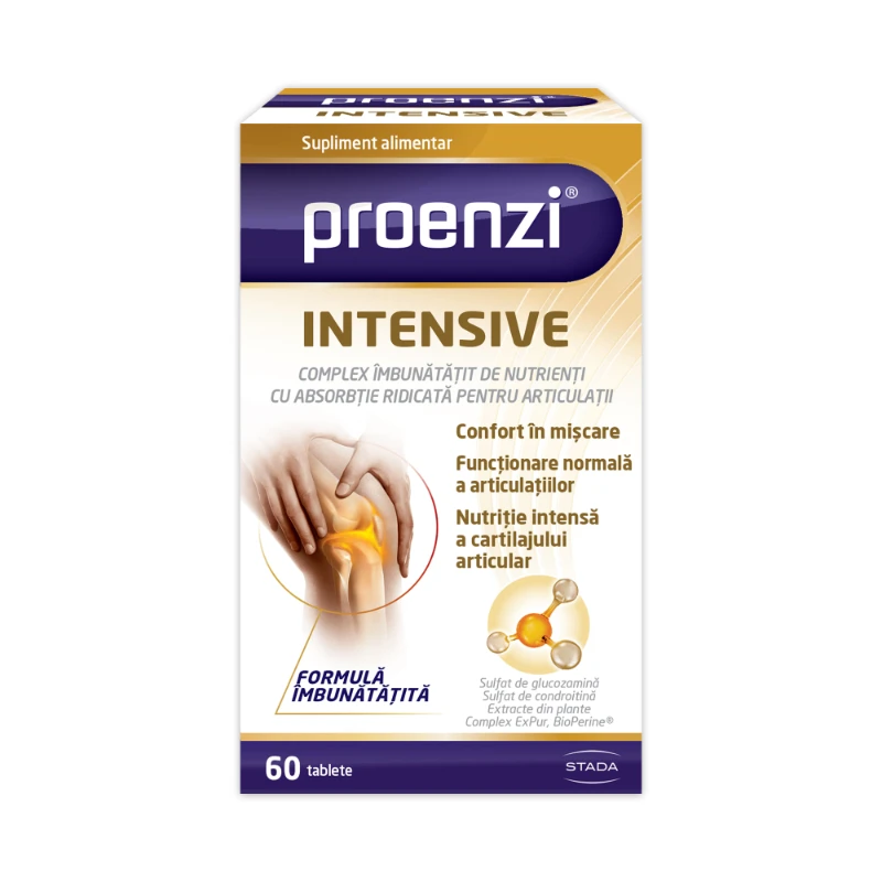 Proenzi Intensive ajuta la funcționarea normală a articulațiilor, mișcare confortabilă si hranirea intensă a cartilajului articular.