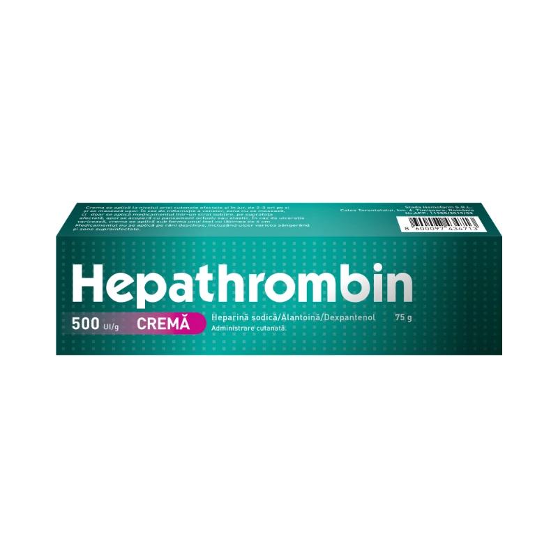 Hepathrombin® cremă este indicat ca adjuvant în tromboză venoasă superficială, tromboflebită, flebită și în leziuni post-traumatice, inclusiv hematoame și contuzii.