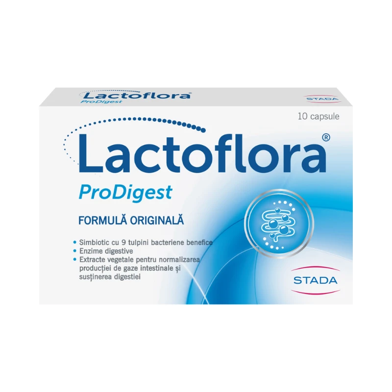 Lactoflora ProDigest este un produs sinbiotic cu o formula originala si unica ce combina enzime digestive, un complex format din 9 tulpini de bacterii benefice, fibre nedigerabile si extracte vegetale.