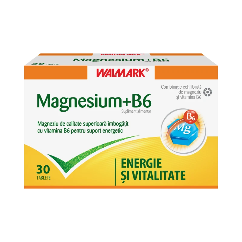 Magneziu de calitate superioară îmbogăţit cu vitamina B6 pentru suport energetic